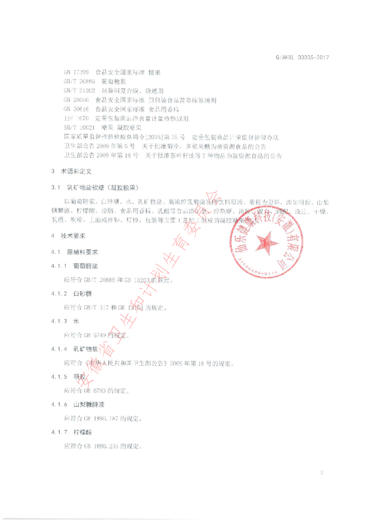 Q/AHXL 0003S-2017 乳矿物盐软糖(凝胶糖果)