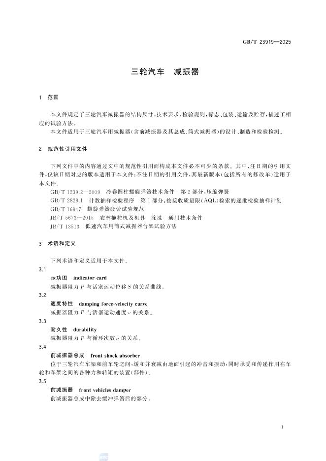 GB/T 23919-2025 三轮汽车 减振器