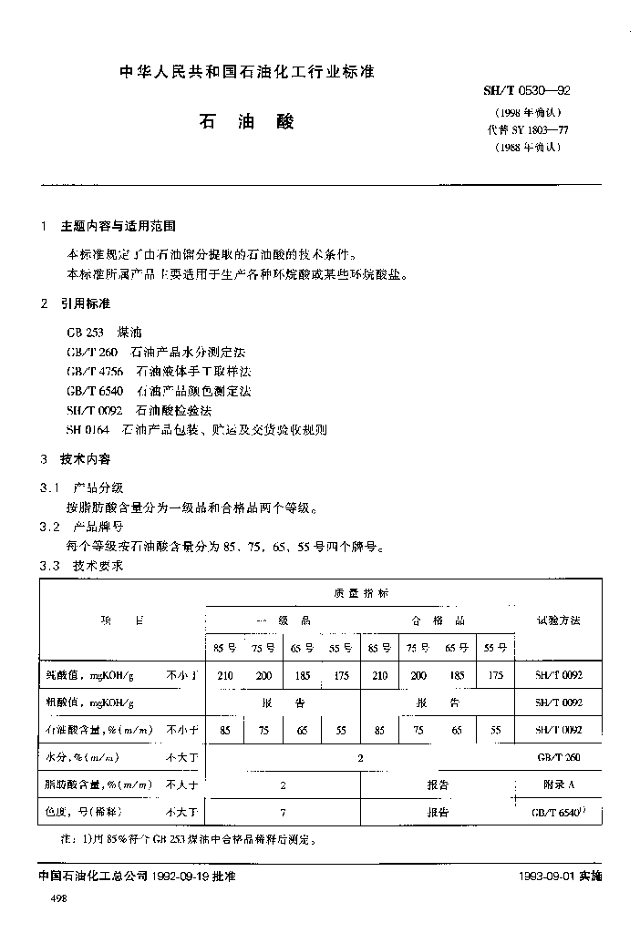 SH/T 0530-1992 石油酸