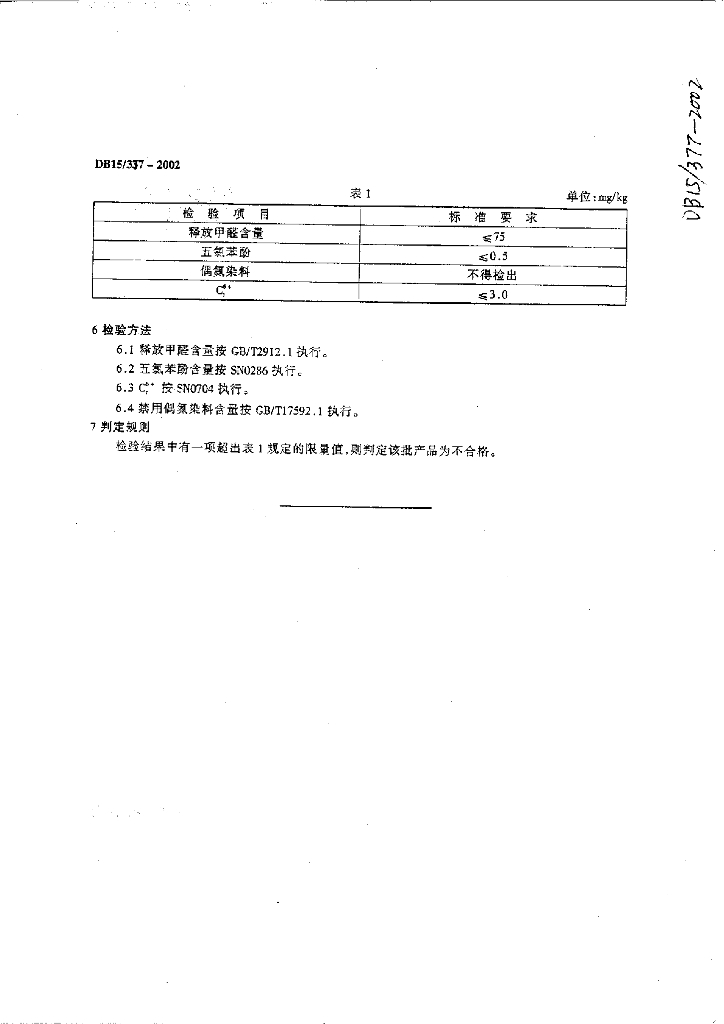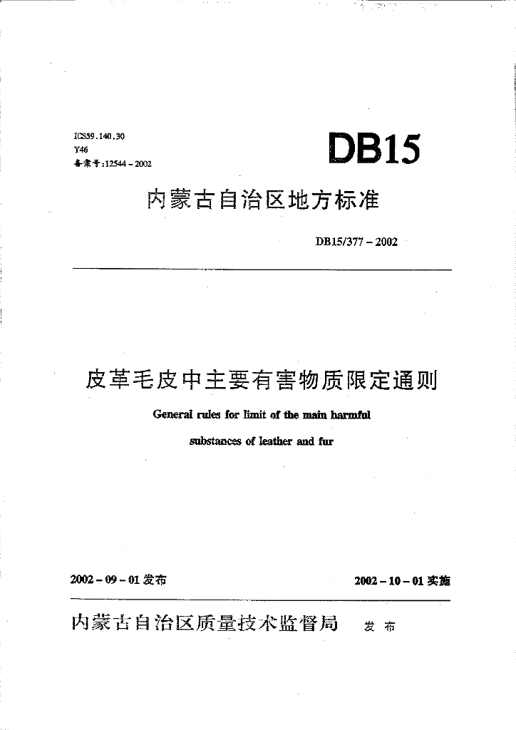 DB15/ 377-2002 皮革毛皮中主要有害物质限定通则