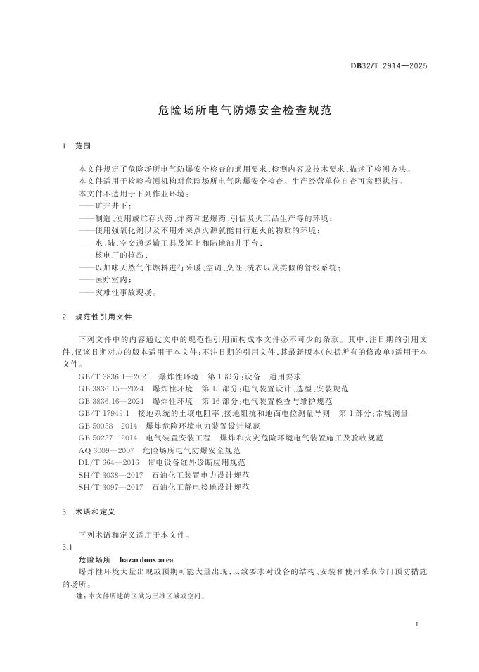 DB32/T 2914-2025 危险场所电气防爆安全检查规范
