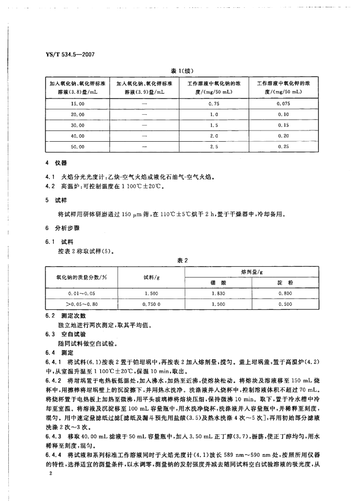 YS/T 534.5-2007 氢氧化铝化学分析方法 第53部分:氧化钠含量的测定