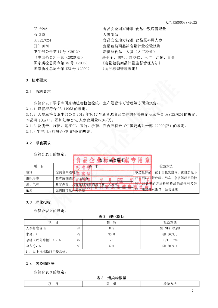 Q/TJSB 0009S-2022 八珍红参蜜片