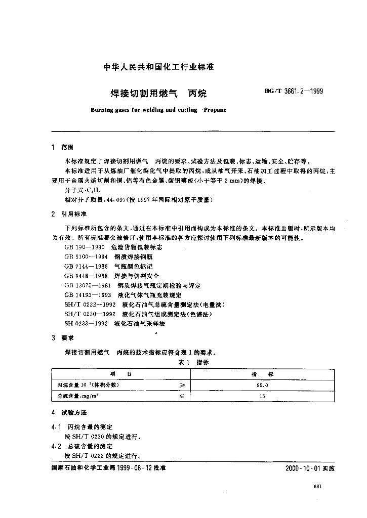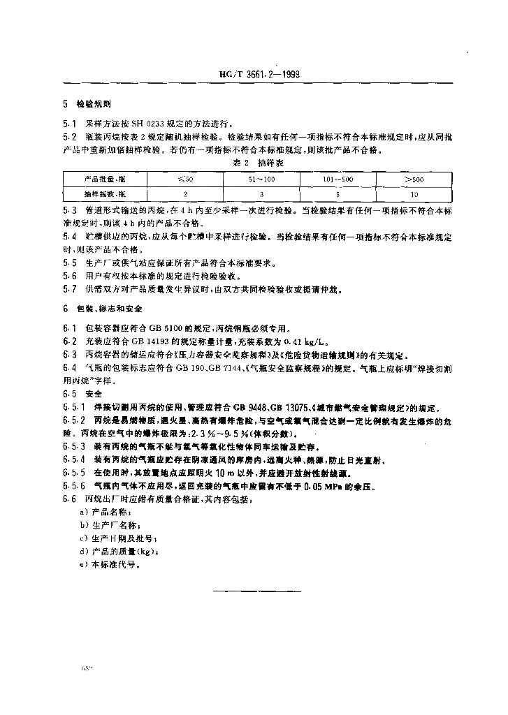 HG/T 3661.2-1999 焊接切割用燃气丙烷