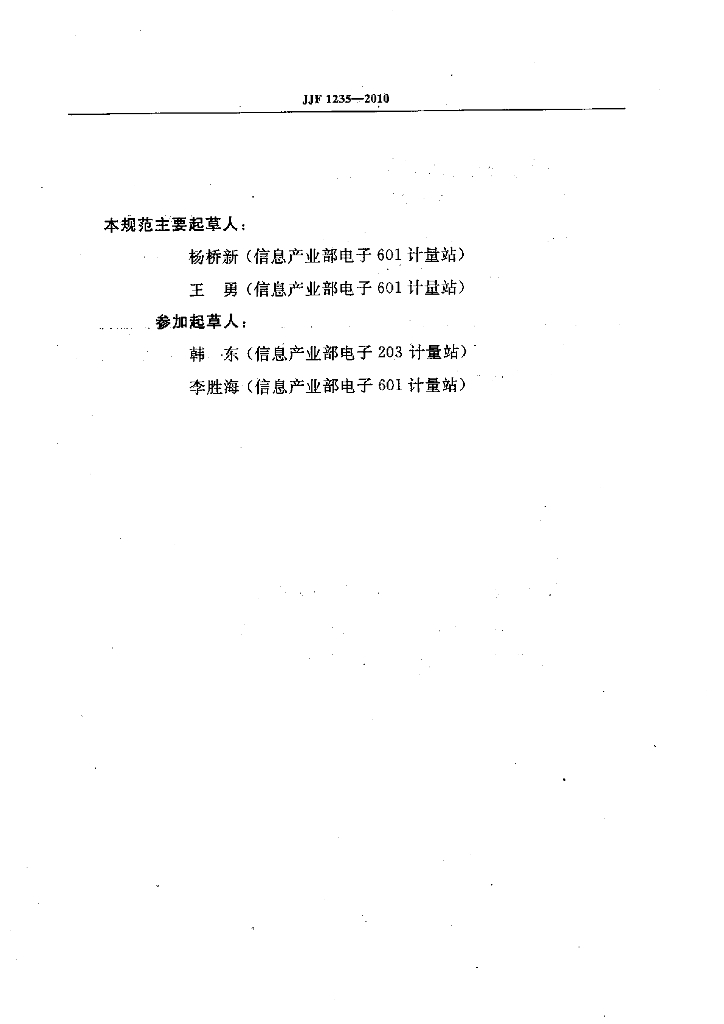 杨桥新(信息产业部电子601计量站)、王勇(信息产业部电子601计量站)、韩东(信息产业部电子203计量站)、李胜海(信息产业部电子601计量站)