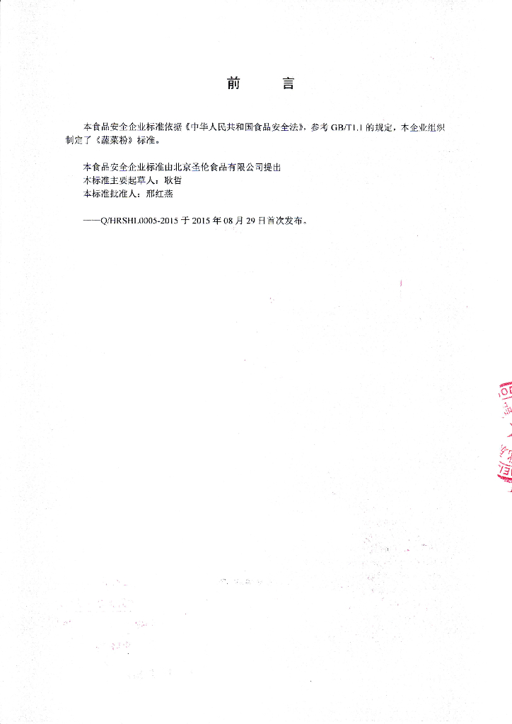 Q/HRSHL 0005-2015 北京圣伦食品有限公司 蔬菜粉
