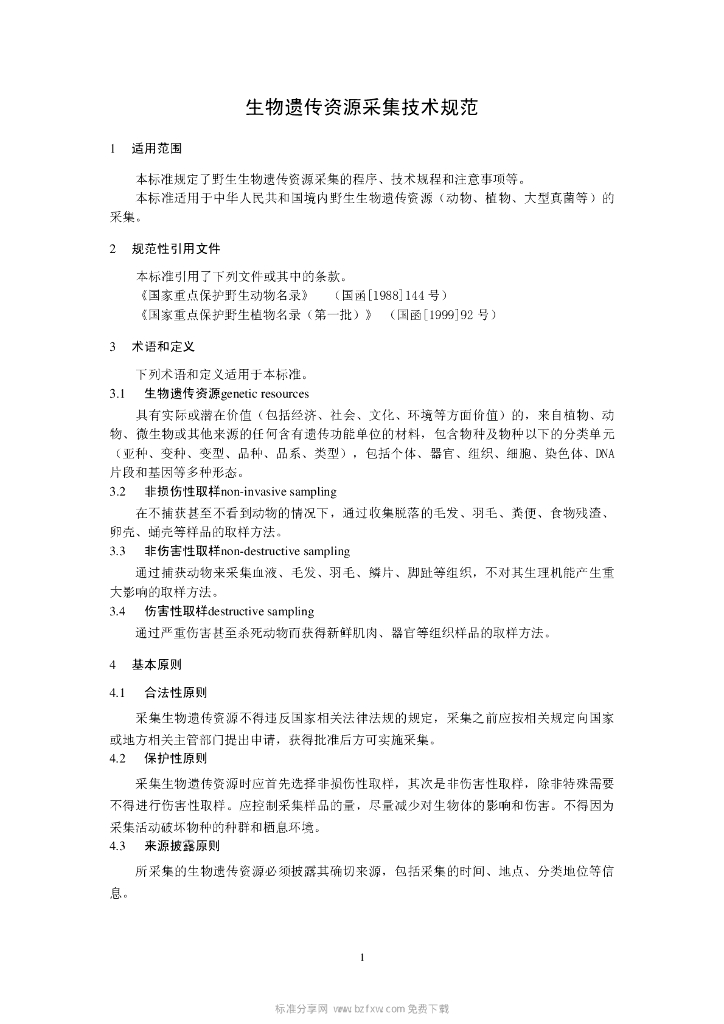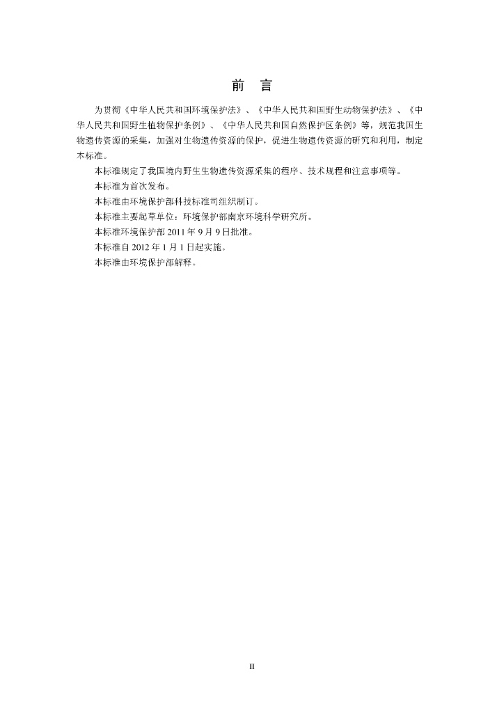 HJ 628-2011 生物遗传资源采集技术规范(试行)