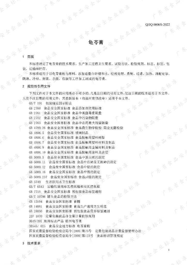 Q/JQ 0006S-2022 龟苓膏