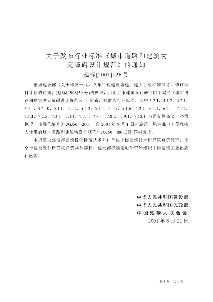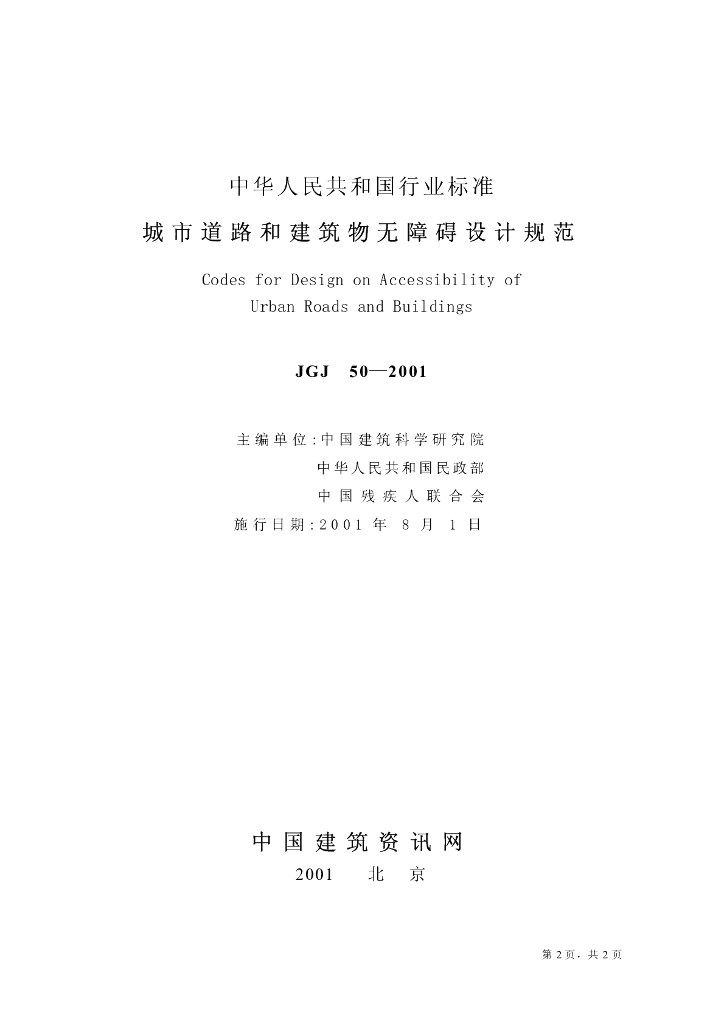 JGJ 50-2001 城市道路和建筑物无障碍设计规范