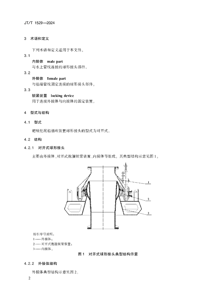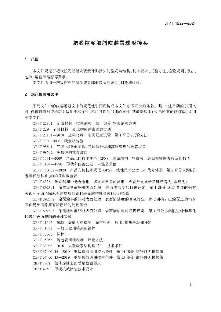 JT/T 1529-2024 耙吸挖泥船艏吹装置球形接头