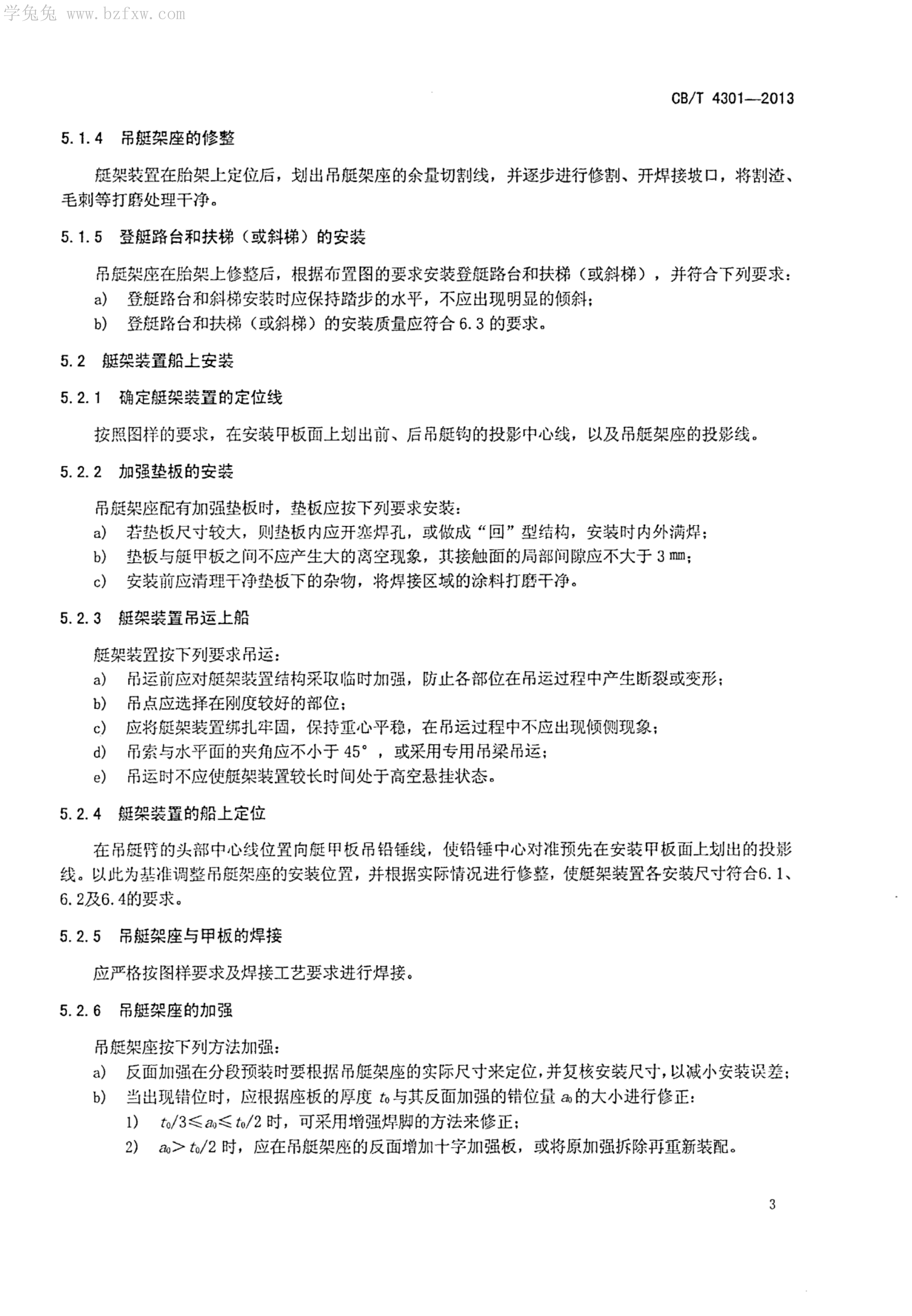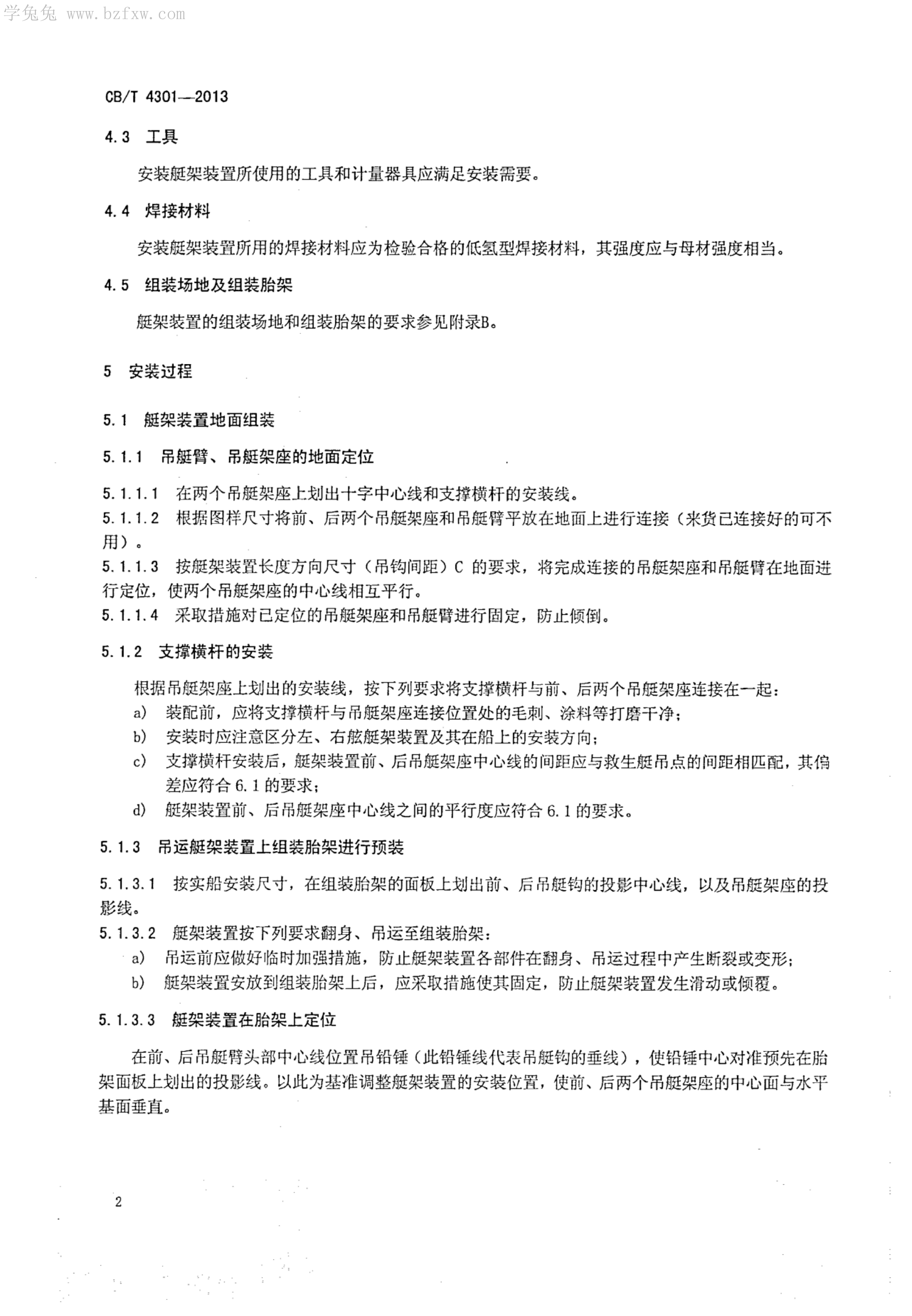 CB/T 4301-2013 重力倒臂式吊艇架装置安装工艺