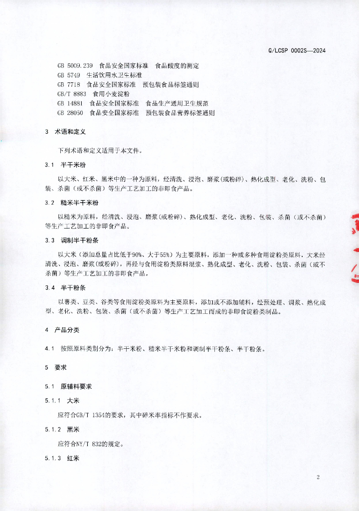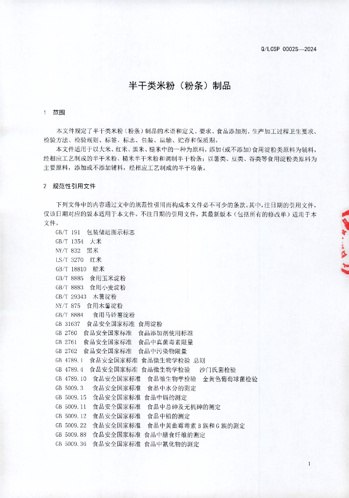 Q/LCSP 0002S-2024 半干类米粉(粉条)制品