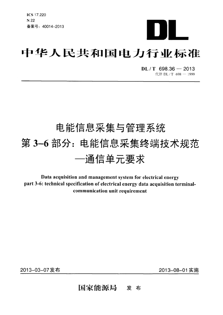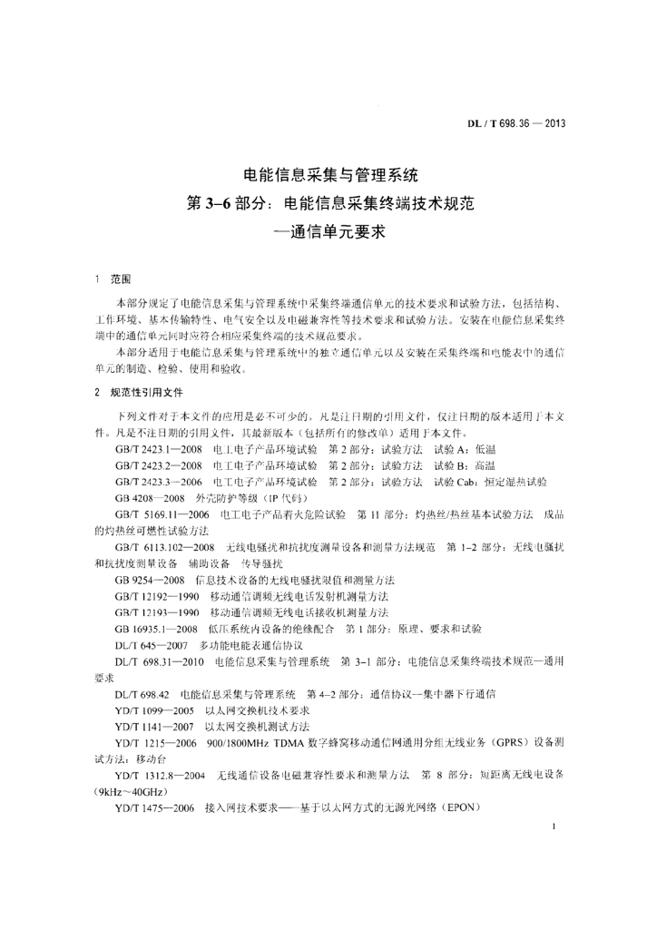 DL/T 698.36-2013 电能信息采集与管理系统 第3-6部分:电能信息采集终端技术规范通信单元要求