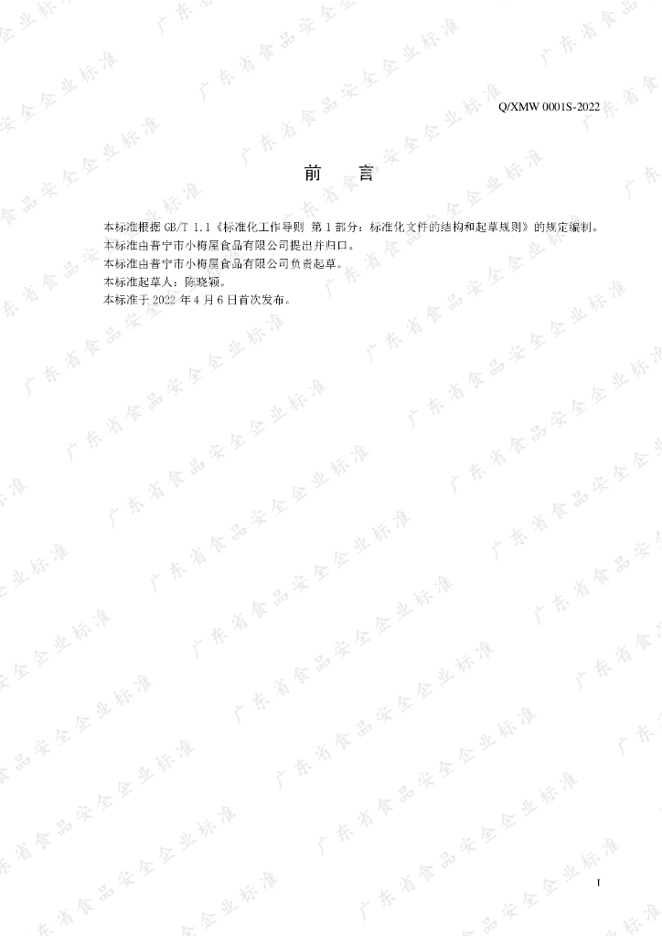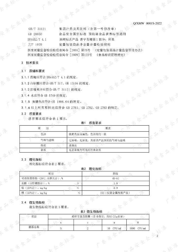 Q/XMW 0001S-2022 发酵青梅汁