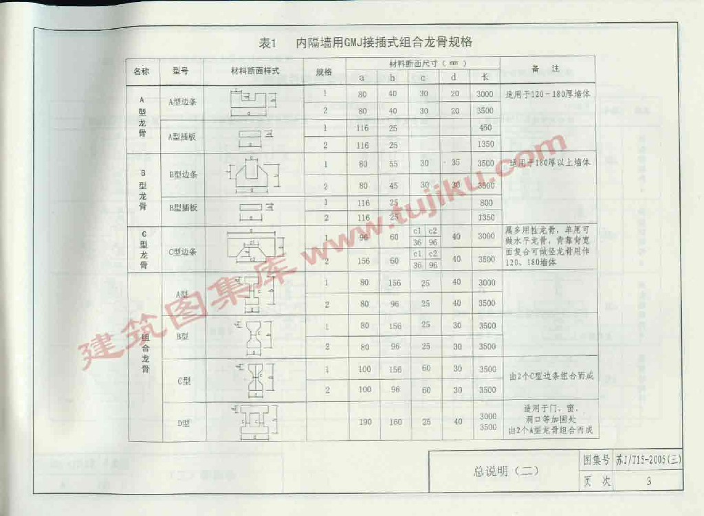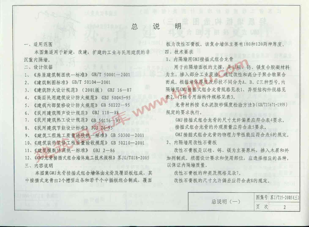 苏J/T15-2005(三) 轻质墙板构造图集(三)GMJ龙骨接插式组合墙体