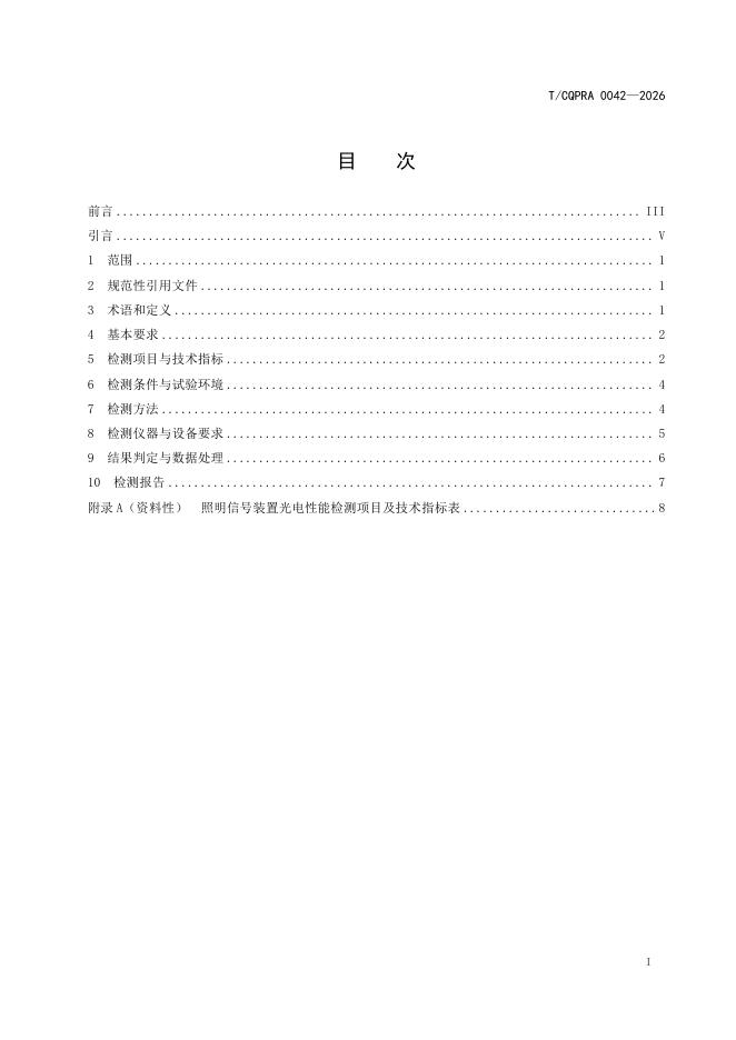 T/CQPRA 0042-2026 照明信号装置光电性能检测技术规范