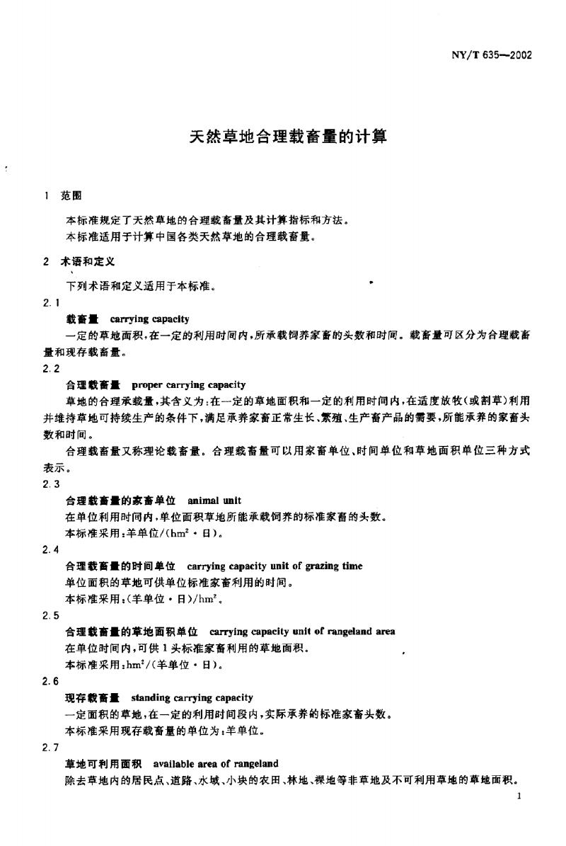 NY/T 635-2002 天然草地合理载畜量的计算