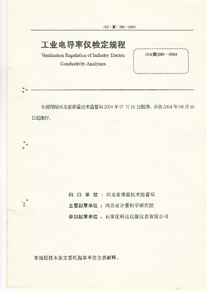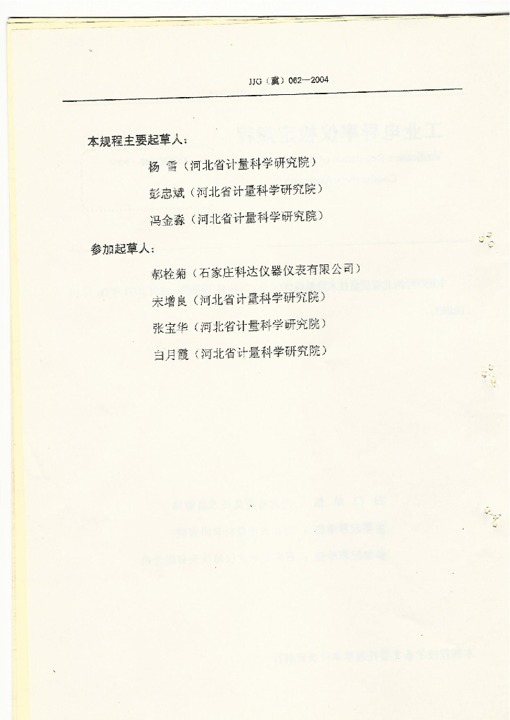杨雪(河北省计量科学研究院)、彭忠斌(河北省计量科学研究院)、冯金淼(河北省计量科学研究院)、郝栓菊(石家庄科达仪器仪表有限公司)、宋增良(河北省计量科学研究院)、张宝华(河北省计量科学研究院)、白月霞(河北省计量科学研究院)
