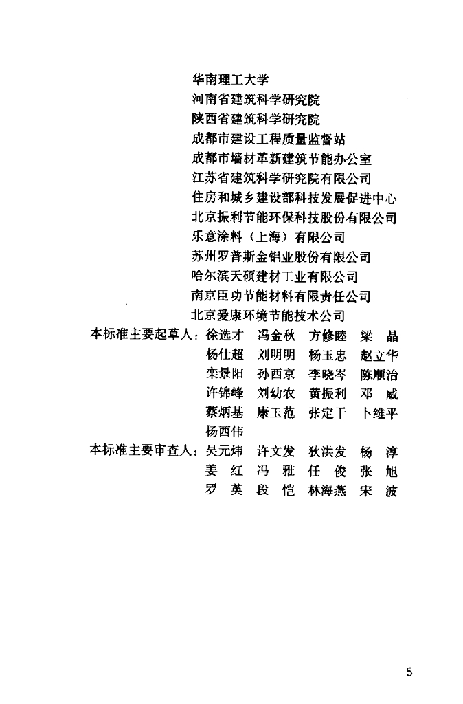 中国建筑科学研究院、哈尔滨工业大学、北京市建筑设计研究院、广东省建筑科学研究院、上海市建筑科学研究院、华南理工大学、河南省建筑科学研究院、陕西省建筑科学研究院、成都市建设工程质量监督站、成都市墙材革新建筑节能办公室、江苏省建筑科学研究院有限公司、住房和城乡建设部科技发展促进中心、北京振利节能环保科技股份有限公司、乐意涂料(上海)有限公司、苏州罗普斯金铝业股份有限公司、哈尔滨天硕建材工业有限公司、南京臣功节能材料有限责任公司、北京爱康环境节能技术公司