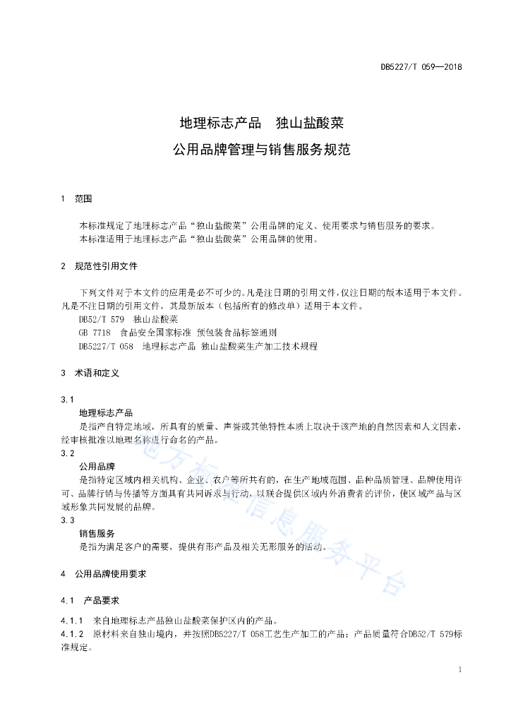 DB5227/T 059-2018 地理标志产品 独山盐酸菜公用品牌管理与销售服务规范