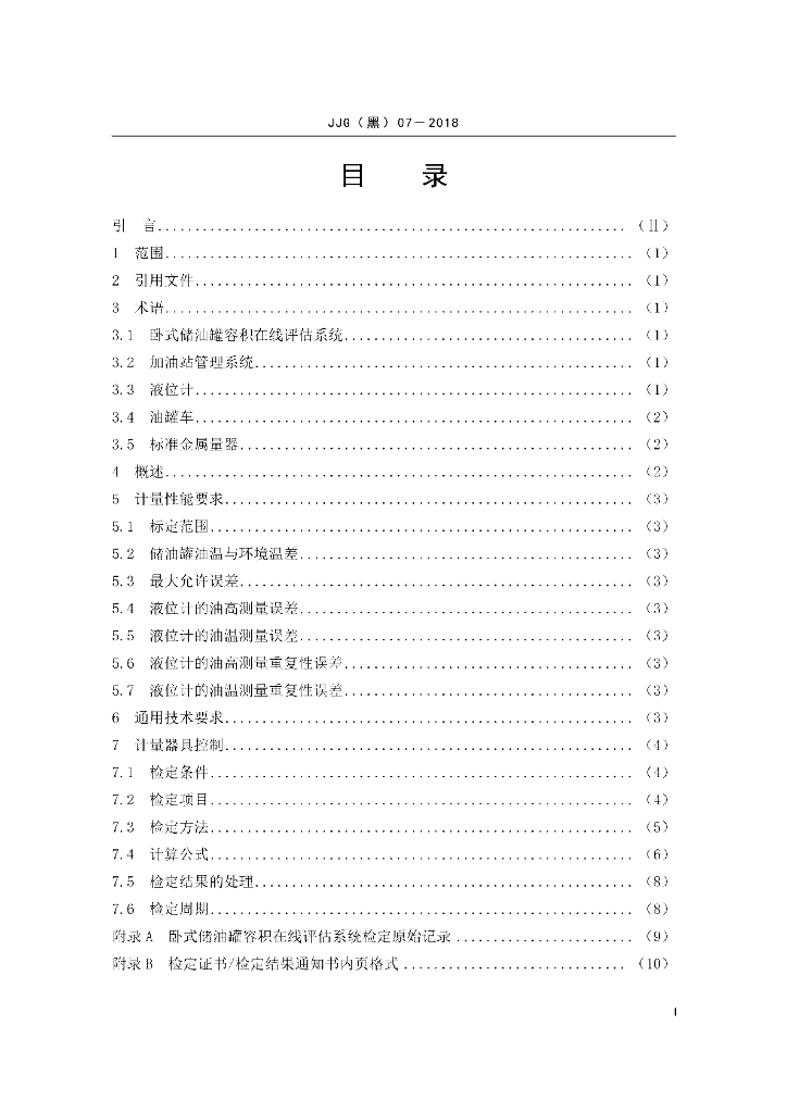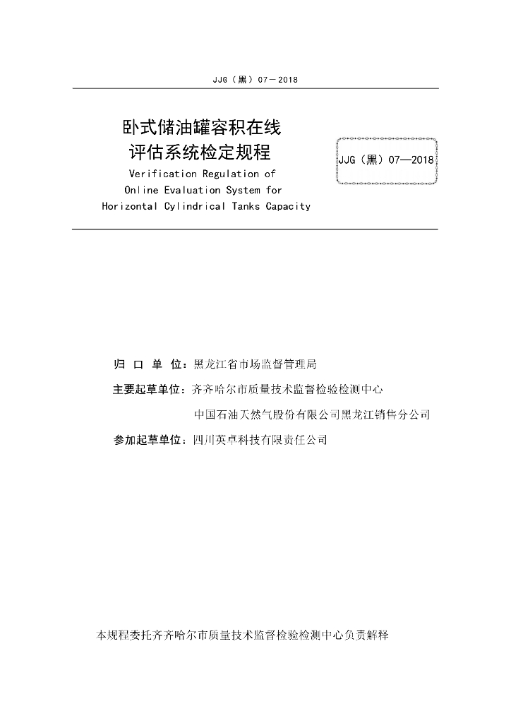 JJG(黑)07-2018 卧式储油罐容积在线评估系统检定规程