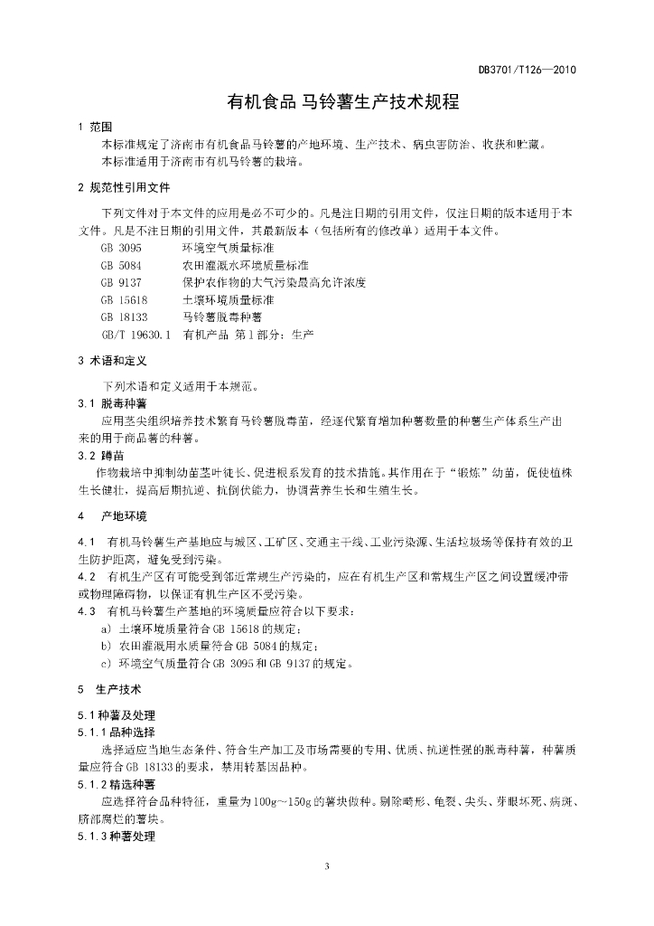 DB3701/T 126-2010 有机食品 马铃薯生产技术规程