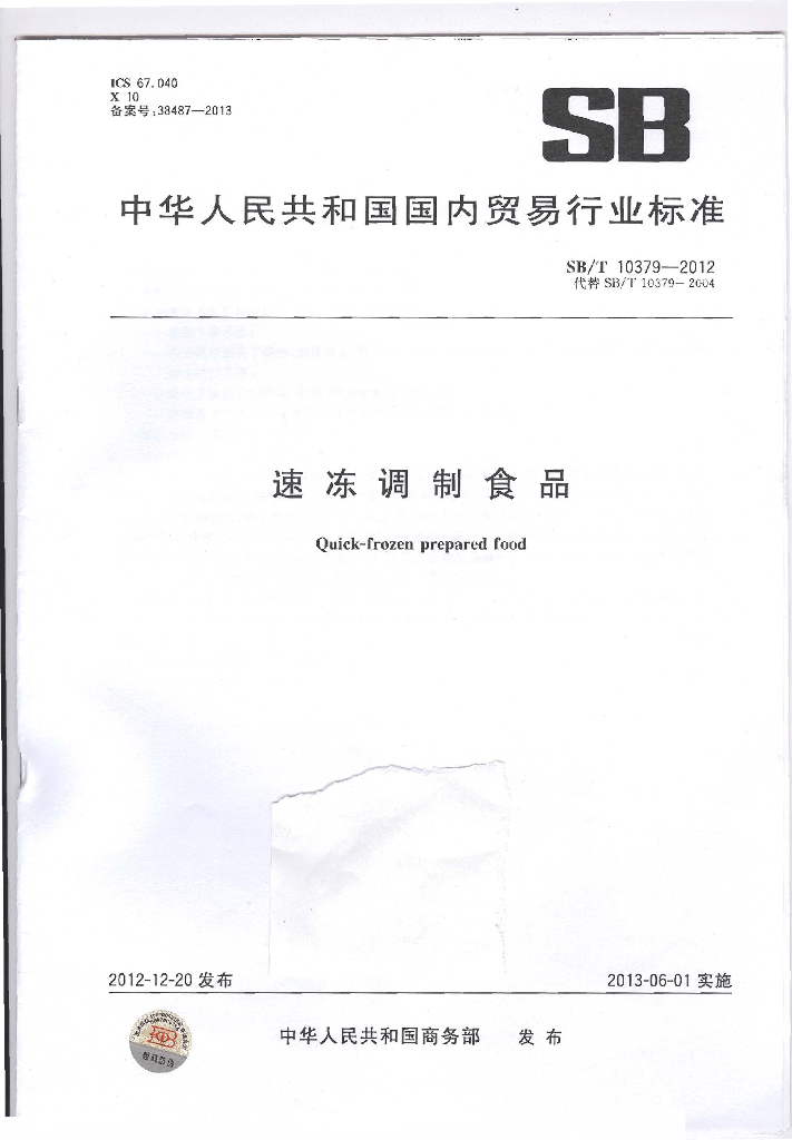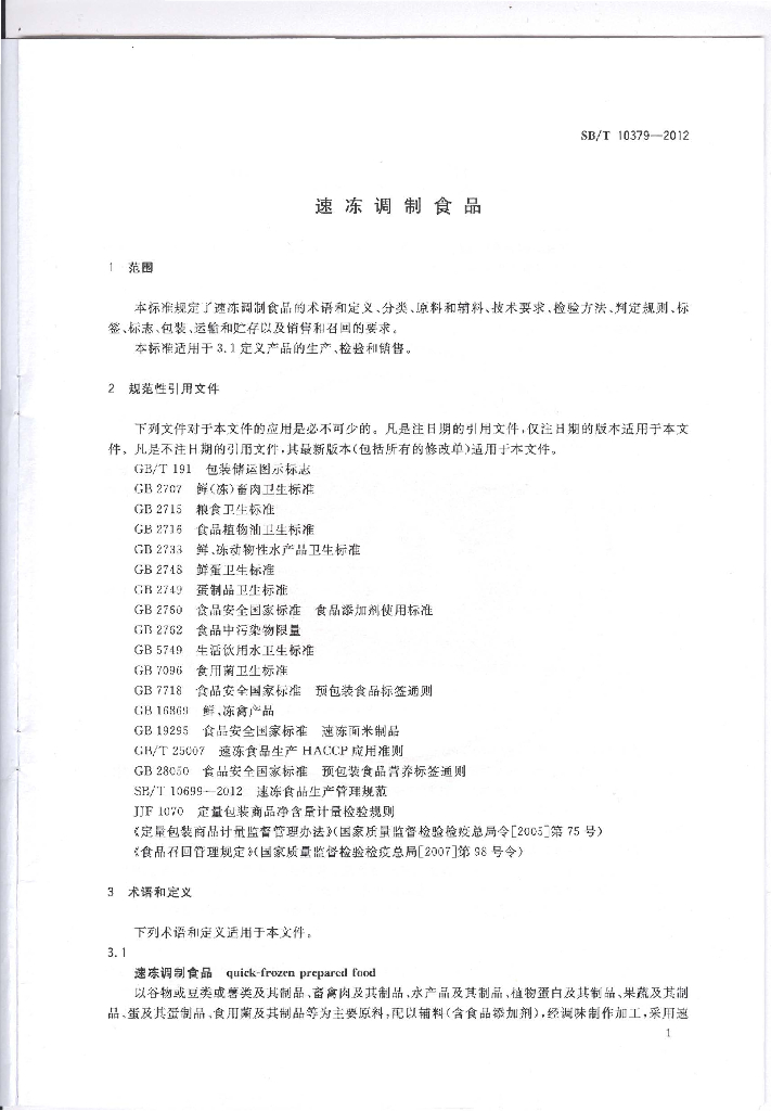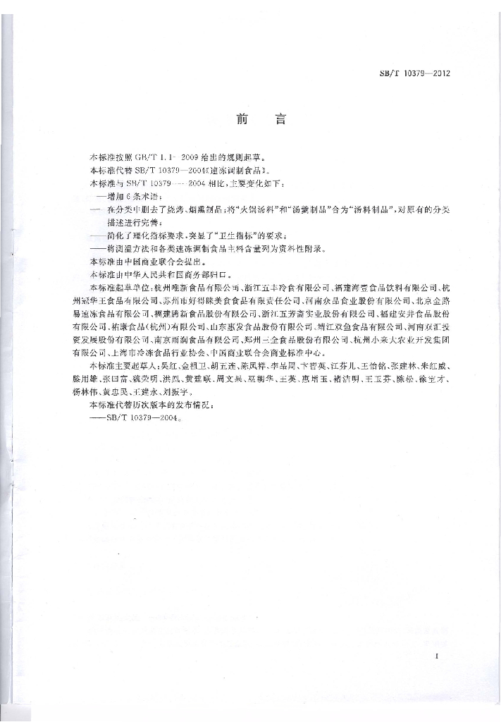 SB/T 10379-2012 速冻调制食品