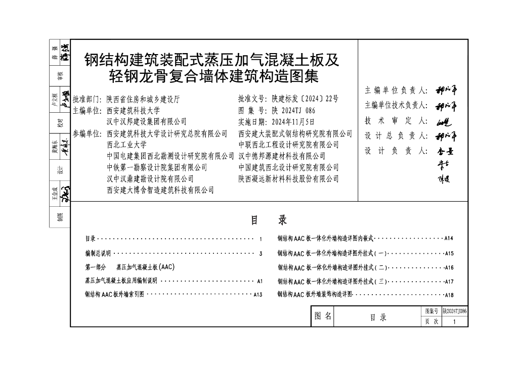 陕2024TJ086 钢结构建筑装配式蒸压加气混凝土板及轻钢龙骨复合墙体建筑构造图集