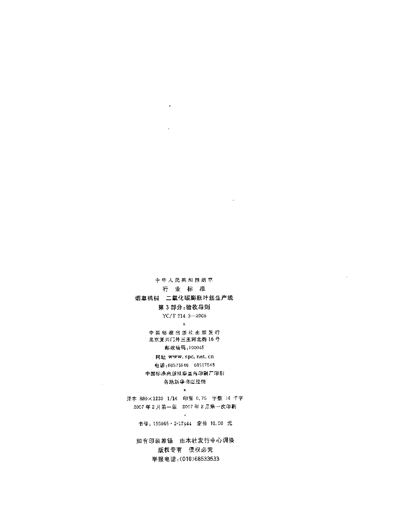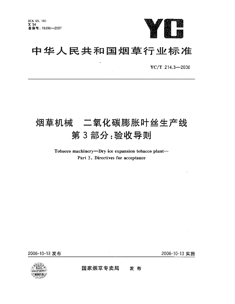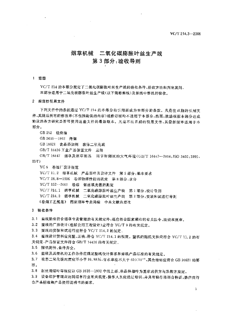 YC/T 214.3-2006 烟草机械 二氧化碳膨胀叶丝生产线 第3部分:验收导则