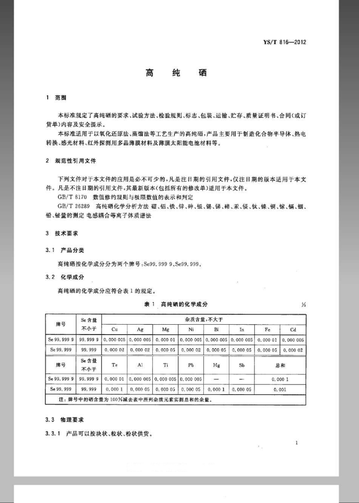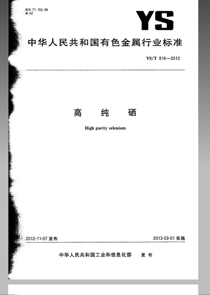 YS/T 816-2012 高纯硒