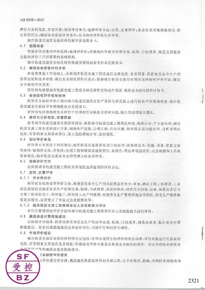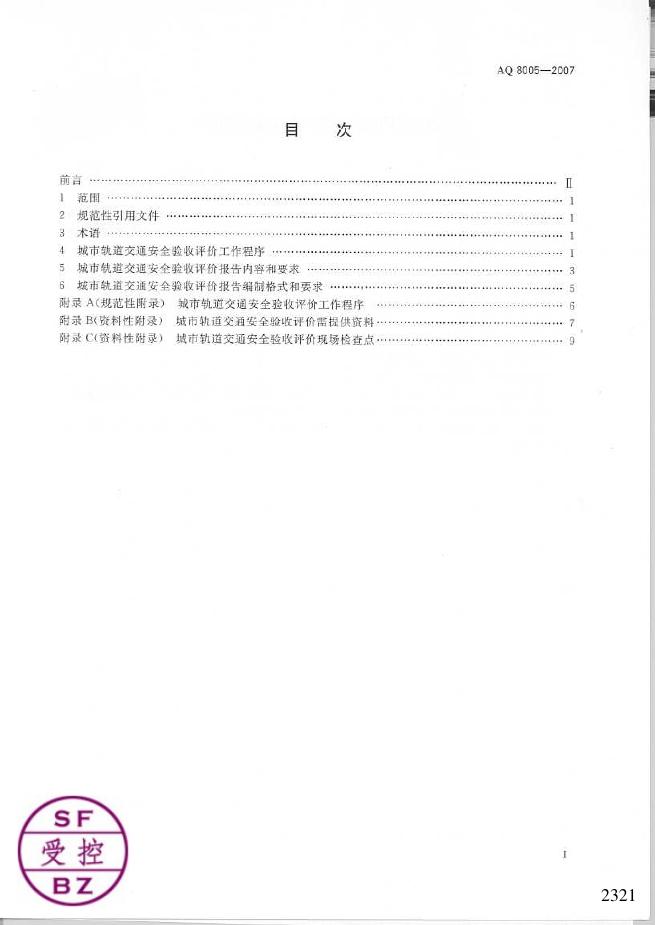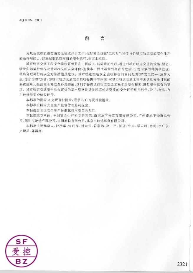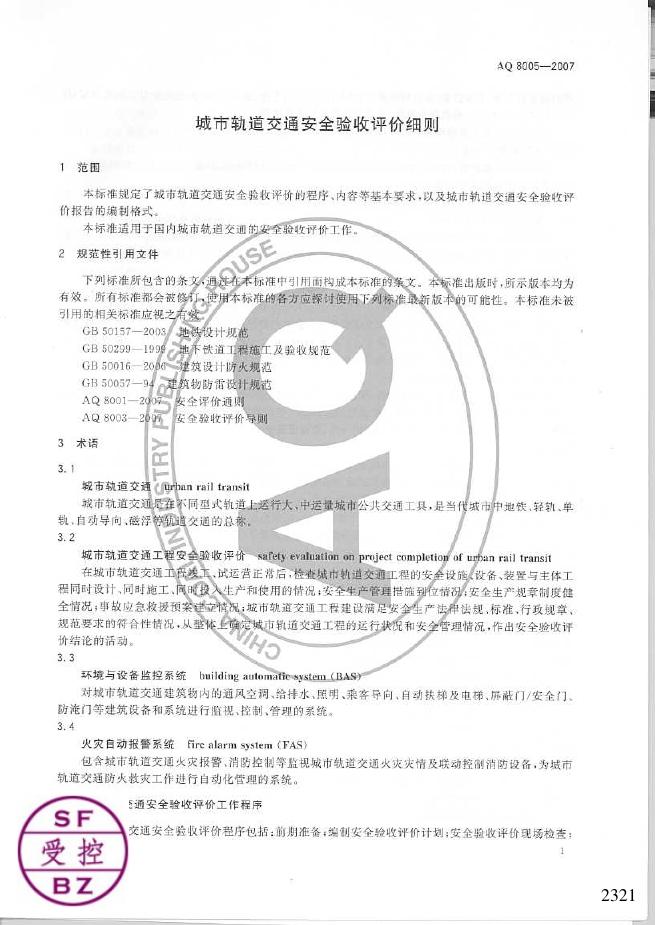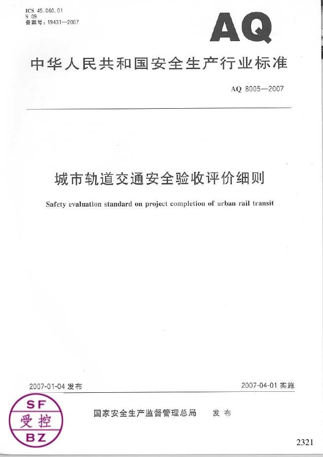 AQ/T 8005-2007 城市轨道交通安全验收评价细则