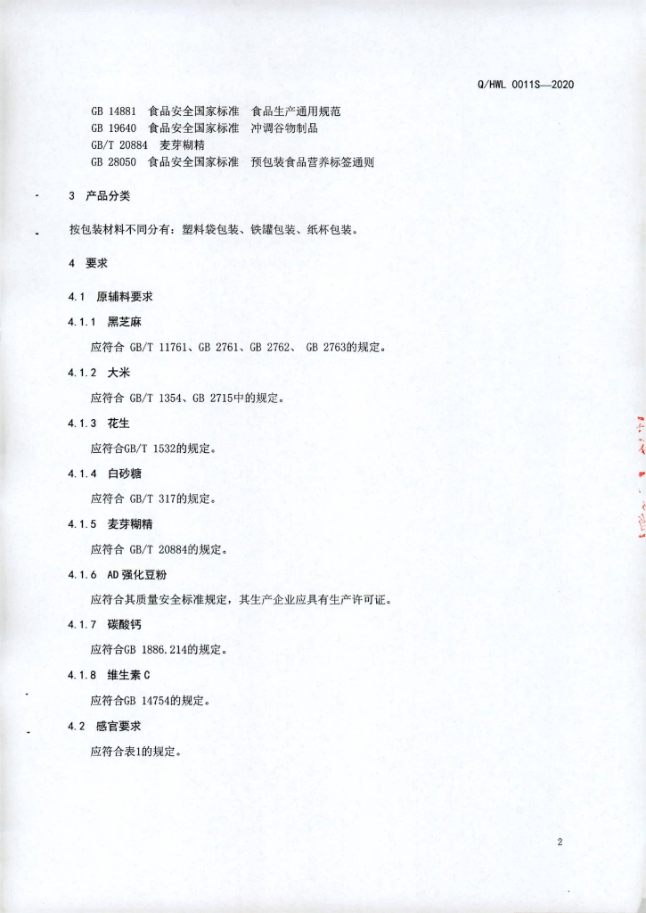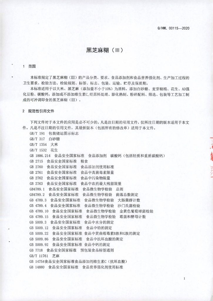 Q/HWL 0011S-2020 黑芝麻糊(III)