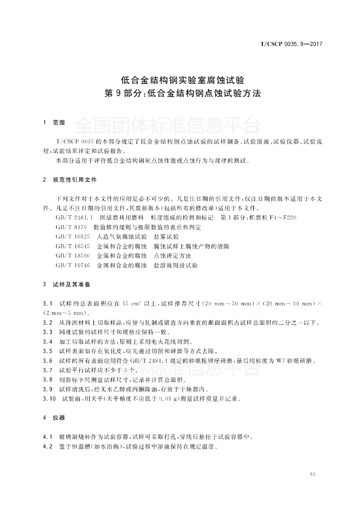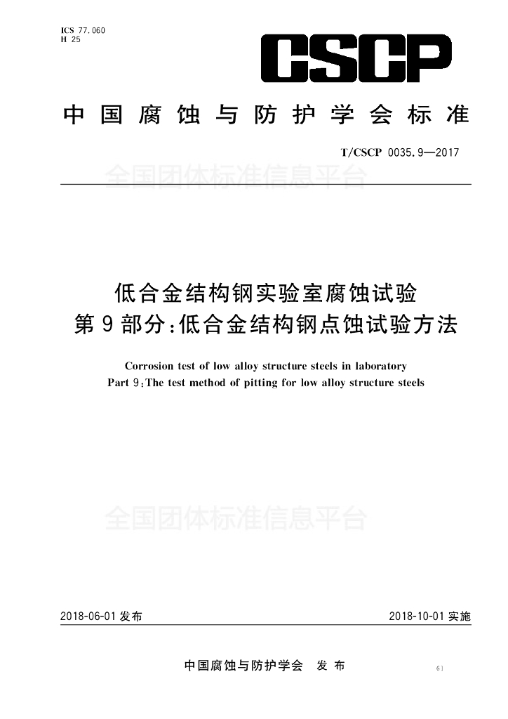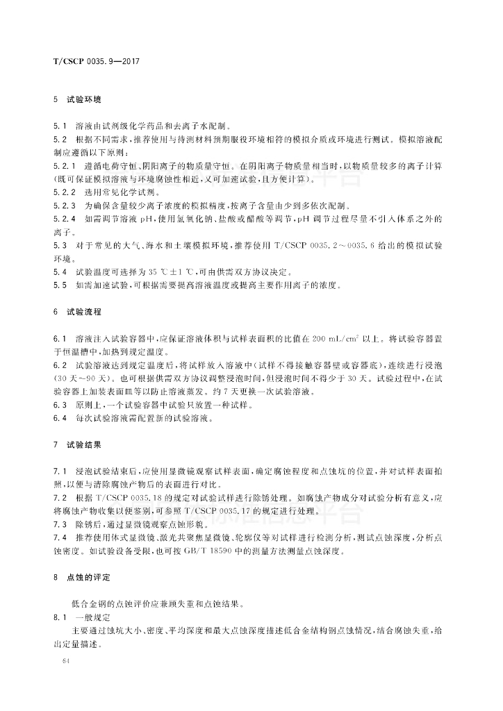 T/CSCP 0035.9-2017 低合金结构钢实验室腐蚀试验 第9部分:低合金结构钢点蚀试验方法