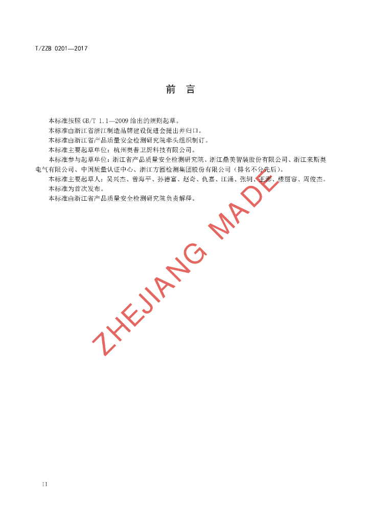本标准由浙江省产品质量安全检测研究院牵头组织制订。、本标准主要起草单位:杭州奥普卫厨科技有限公司。、本标准参与起草单位:浙江省产品质量安全检测研究院、浙江鼎美智装股份有限公司、浙江来斯奥电气有限公司、中国质量认证中心、浙江方圆检测集团股份有限公司(排名不分先后)。