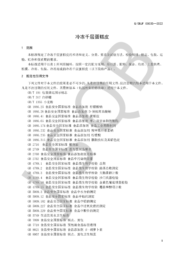 Q/OBJF 0003S-2022 冷冻千层蛋糕皮