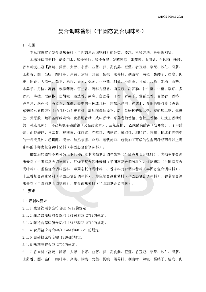 Q/HGS 0006S-2021 复合调味酱料(半固态复合调味料)