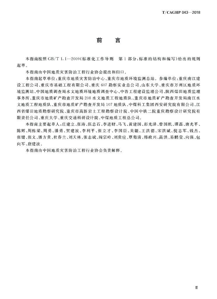重庆市地质灾害防治中心,重庆市地质环境监测总站。参编单位:重庆南江建设工程公司、重庆市基础工程有限公司、重庆地质环境监测总站、重庆607勘察实业总公司、山东大学、万州区地质环境监测站、中国地质调查局水文地质环境地质调查中心、中咨监理公司、陕西煤田地质监理事务所、重庆市地勘局208水文地质工程地质队、重庆市地勘局南江地质队、重庆市地勘局107地质队、中煤科工集团西安研究院、江西省煤田地质勘察研究院、重庆市高新岩土工程勘察设计院、中铁二院重庆公司、重庆大学、重庆交科院、中煤地质工程总公司