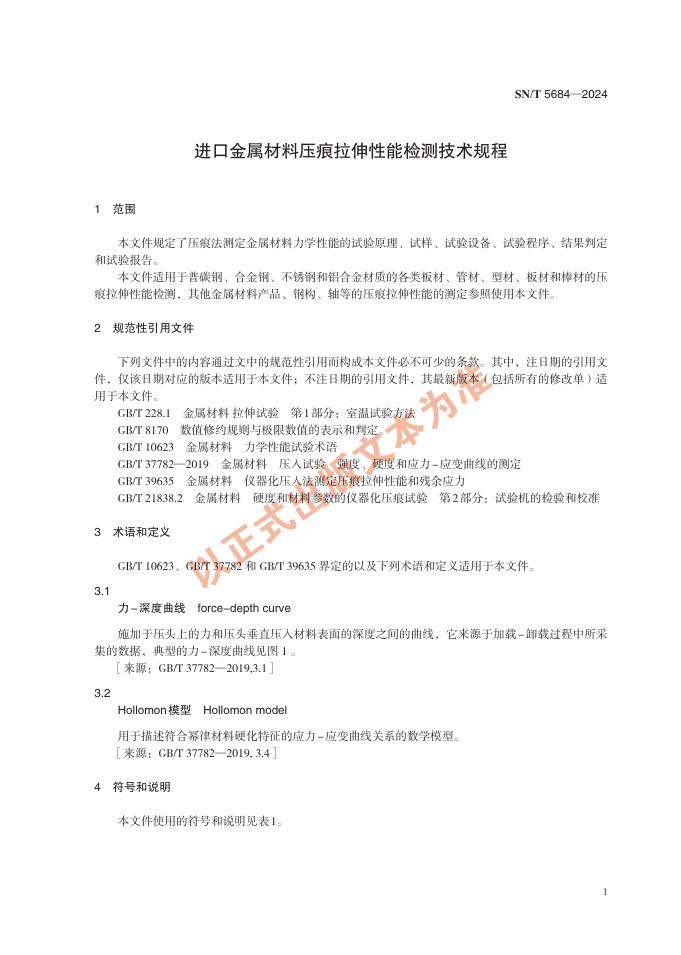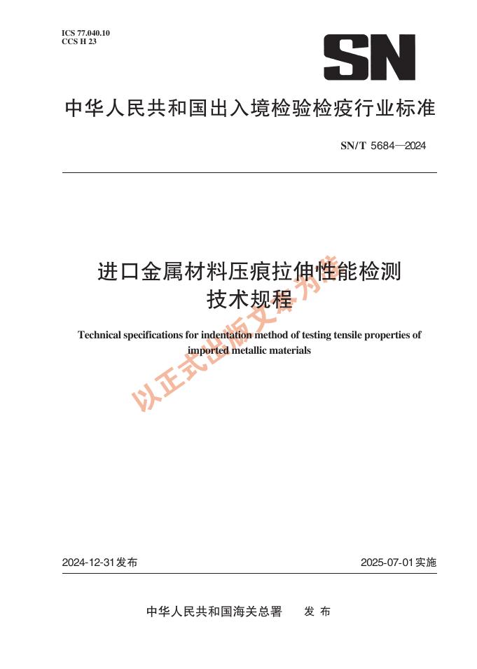 SN/T 5684-2024 进口金属材料压痕拉伸性能检测技术规程