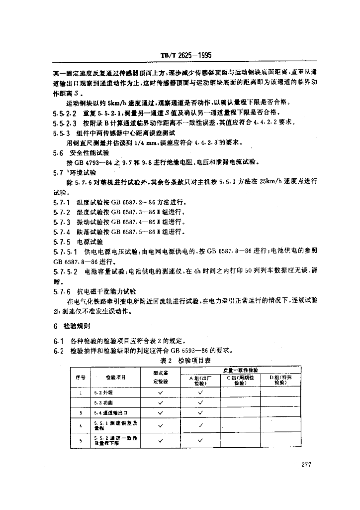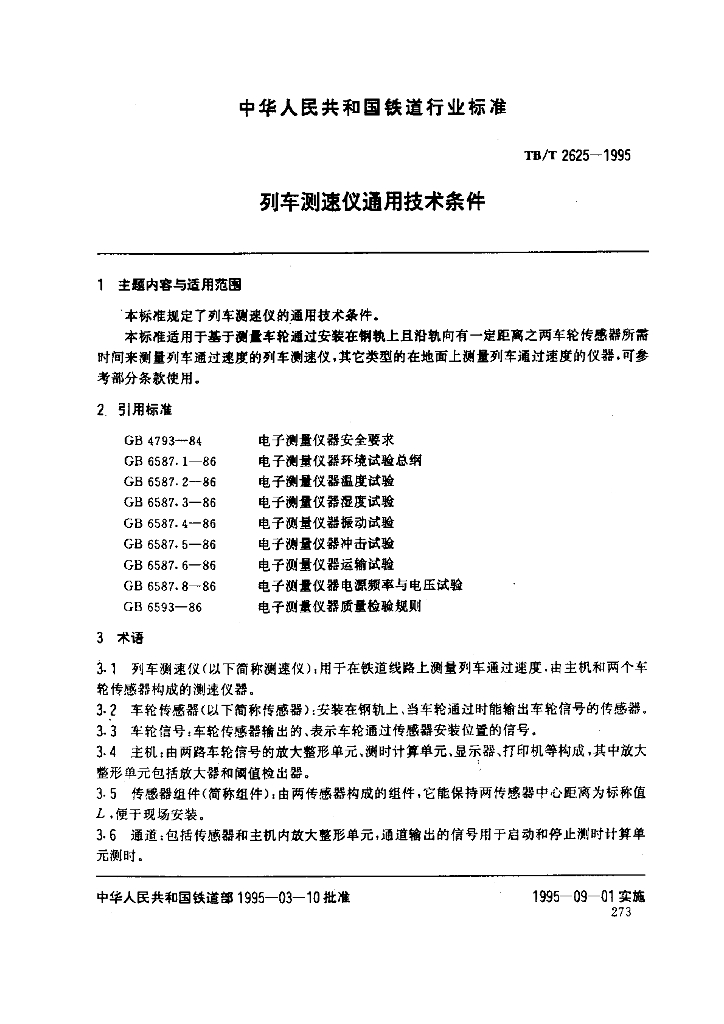 TB/T 2625-1995 列车测速仪通用技术条件