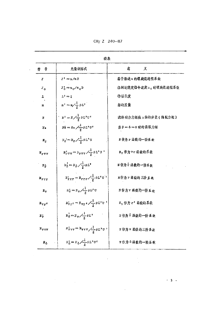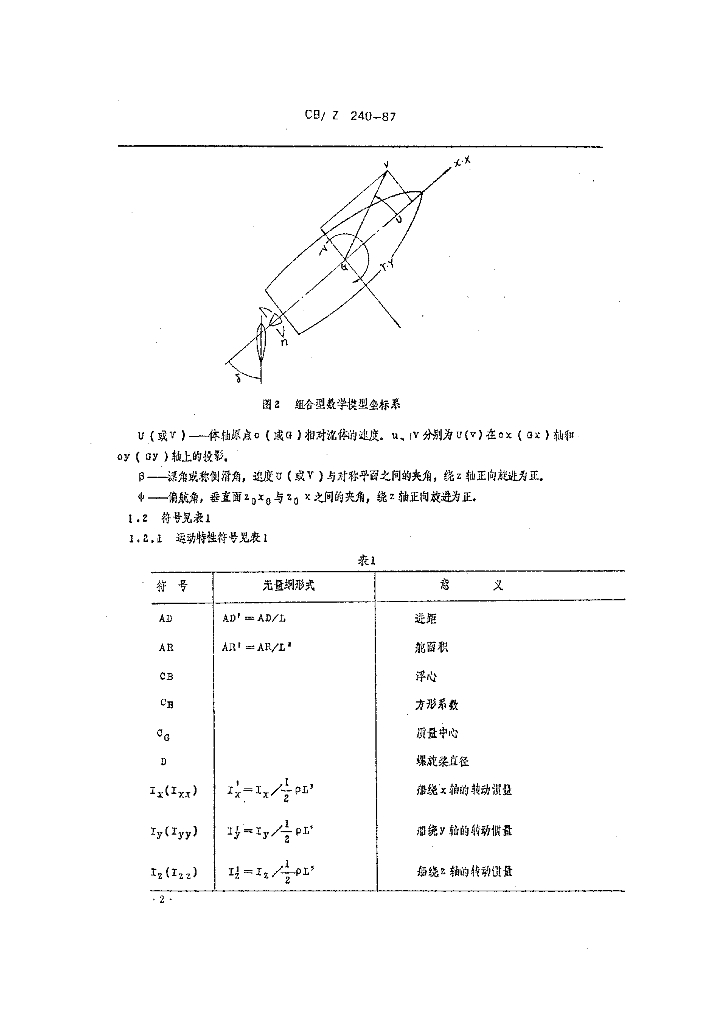 CB/Z 240-1987 船舶操纵运动数学模型