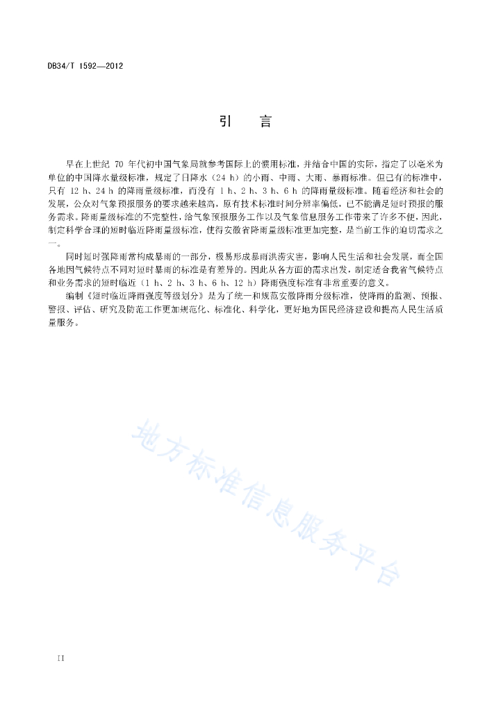 DB34/T 1592-2012 短时临近降雨强度等级划分