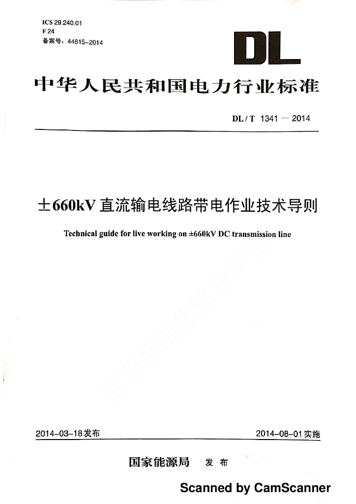 DL/T 1341-2014 ±660kV直流输电线路带电作业