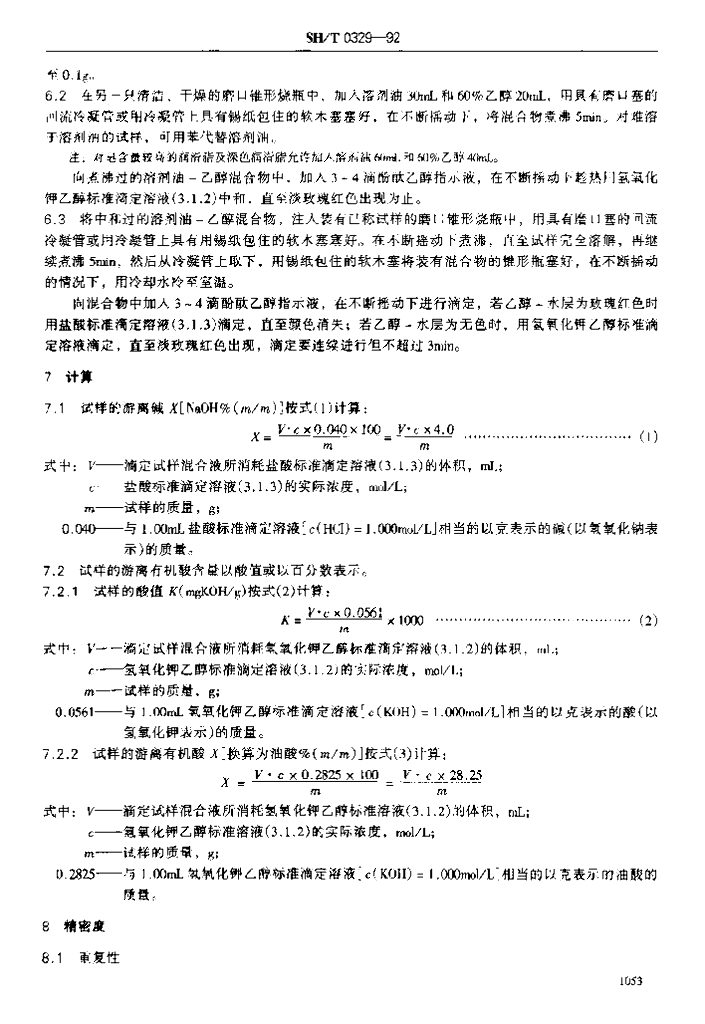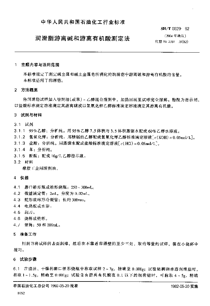 SH/T 0329-1992 润滑脂游离碱和游离有机酸测定法