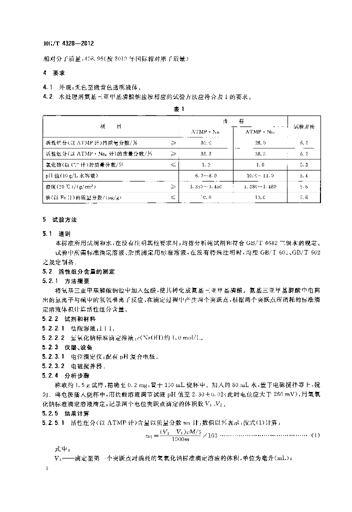 HG/T 4328-2012 水处理剂 氨基三亚甲基膦酸钠盐