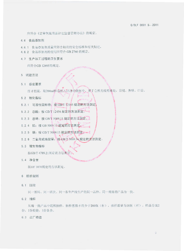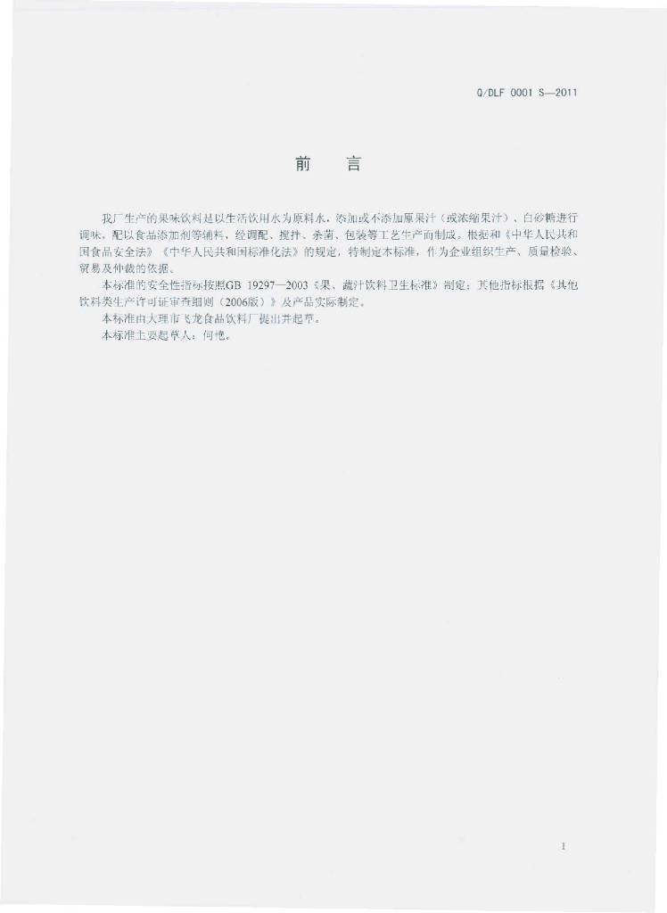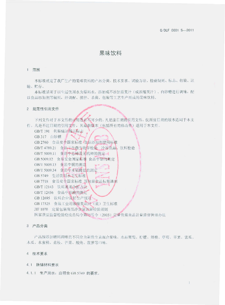 Q/DLF 0001S-2011 果味饮料