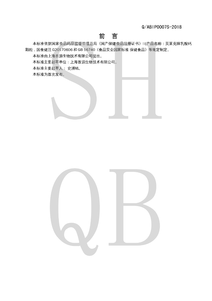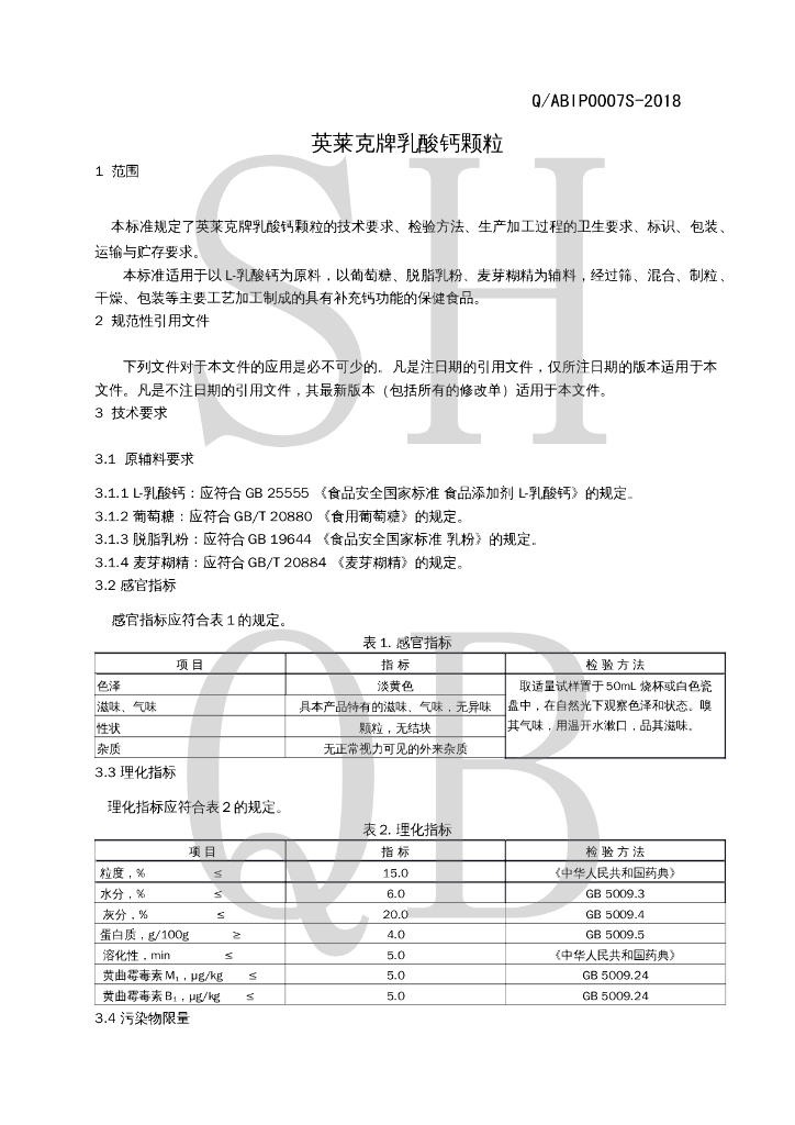 Q/ABIP 0007S-2018 英莱克牌乳酸钙颗粒