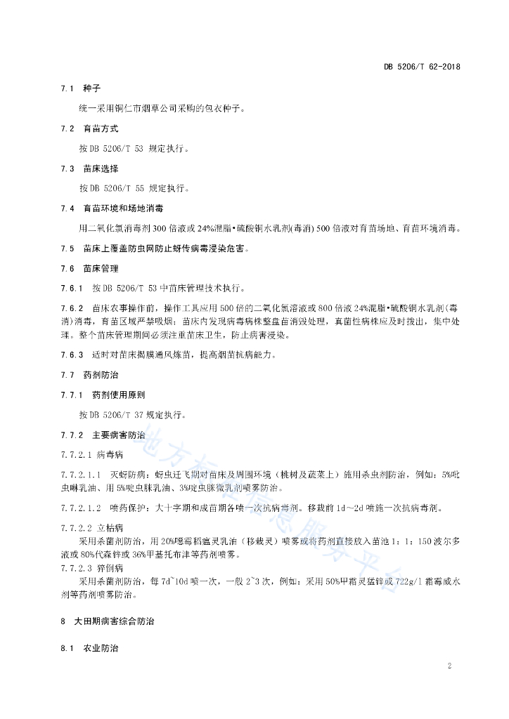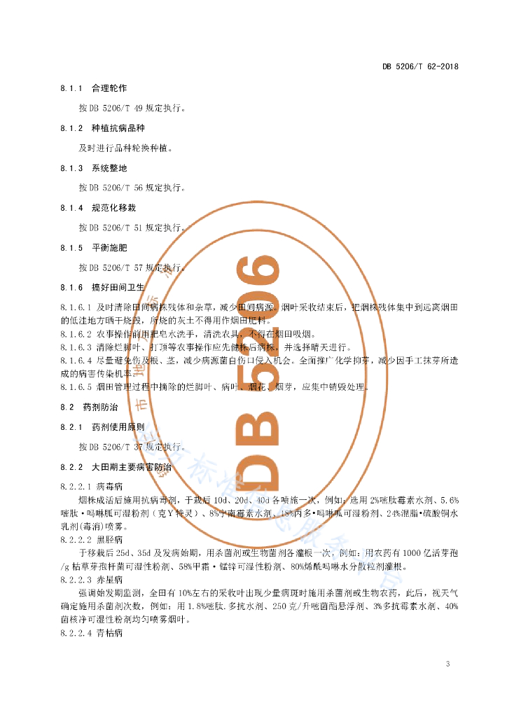 DB5206/T 62-2018 烟草病害综合防治技术规程