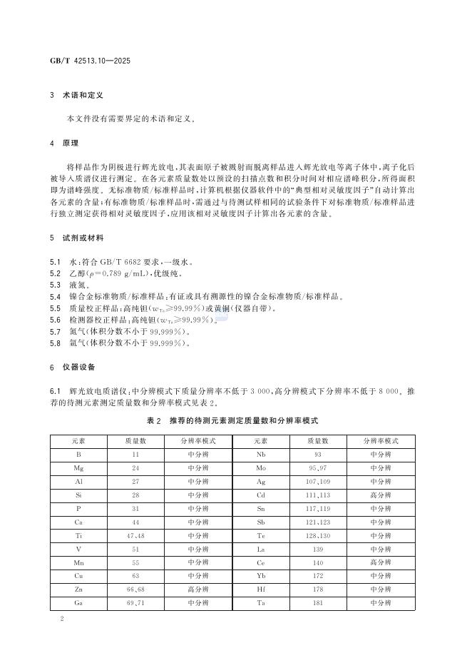 GB/T 42513.10-2025 镍合金化学分析方法 第10部分:痕量元素含量的测定 辉光放电质谱法