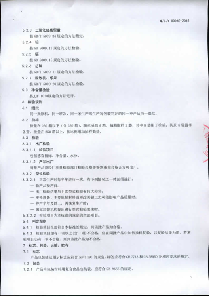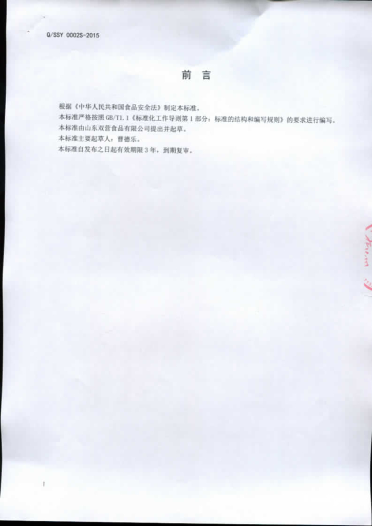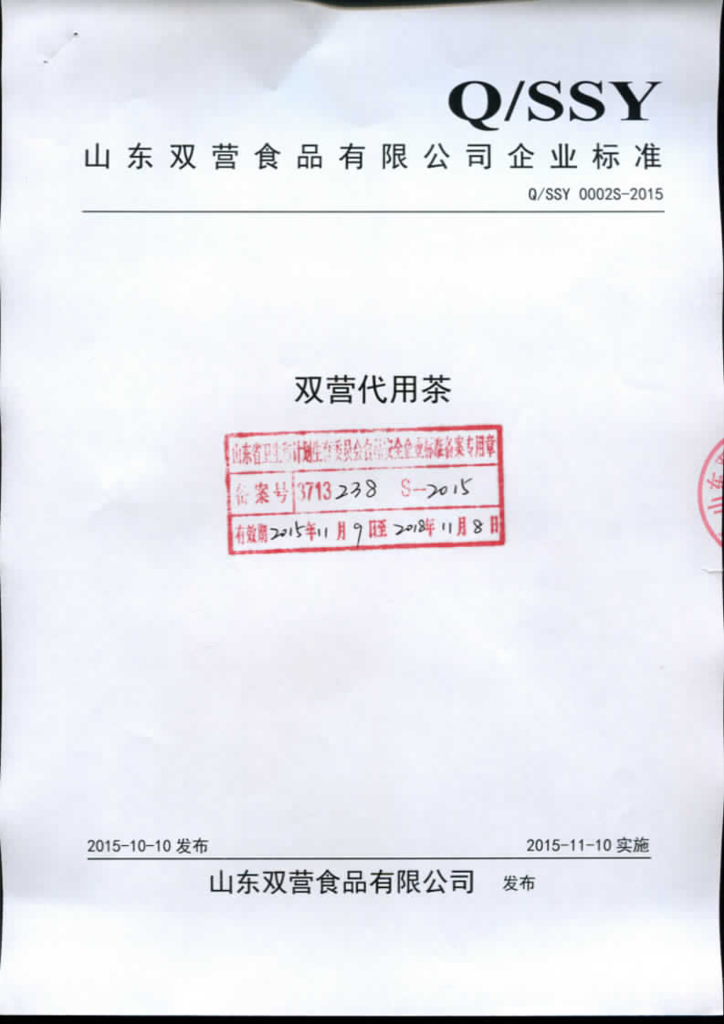 Q/SSY 0002S-2015 山东双营食品有限公司 双营代用茶