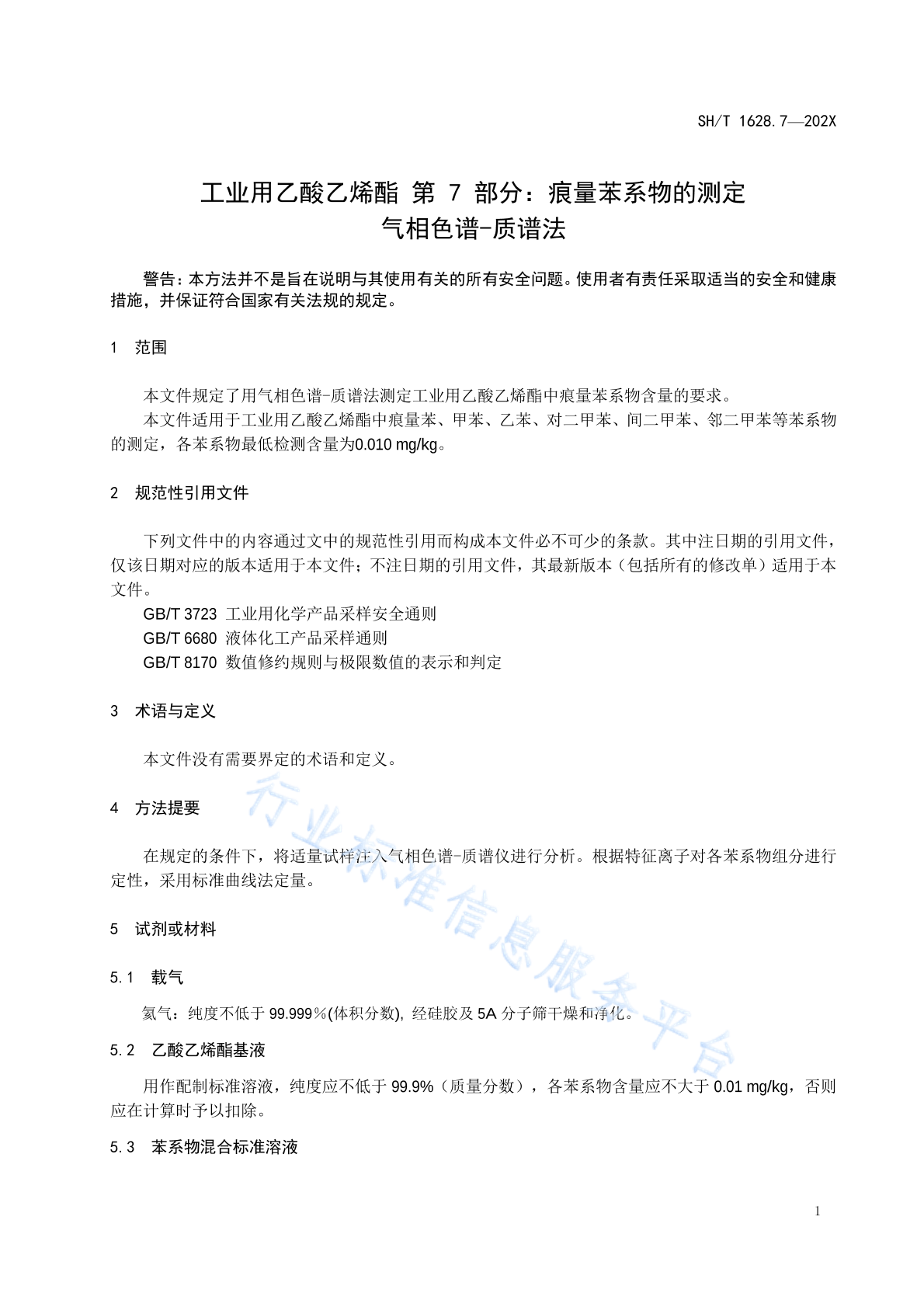 SH/T 1628.7-2023 工业用乙酸乙烯酯 第7部分:痕量苯系物的测定 气相色谱-质谱法